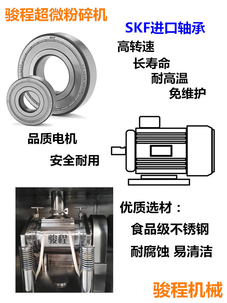 4、粉碎范圍廣:適應于各種植物的根、莖、葉、含糖性原料(如枸杞、麥冬等)、食品添加劑、各種雜糧、各種脫水的(蔬菜、水果)、化工原料、各種顏料、碳黑等非金屬原料的超微粉碎。