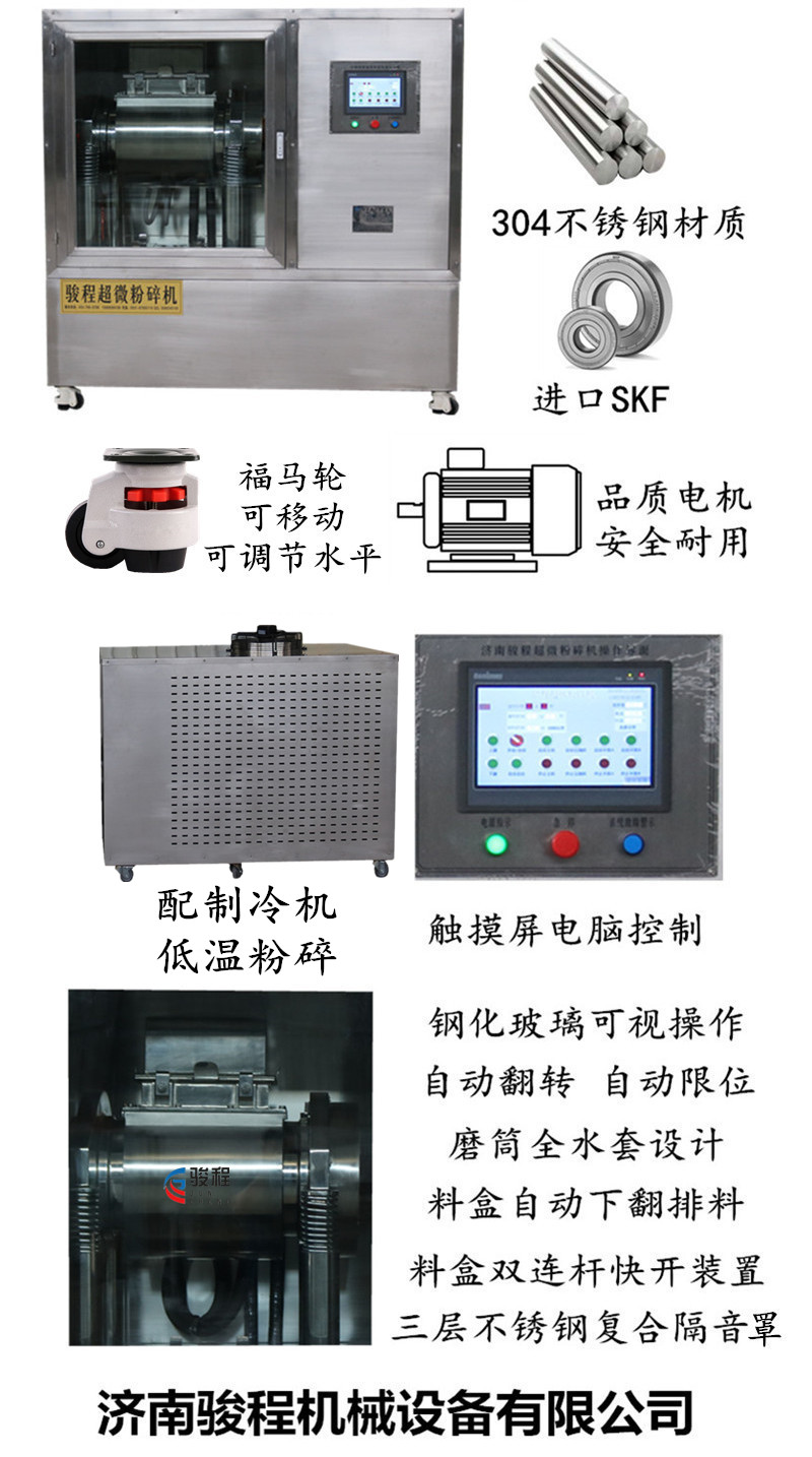 駿程振動研磨式超微粉碎機采用全密閉多磨不篩技術,配制冷系統,在低溫狀態下進行粉碎,粉碎過程無過熱現象,可使升溫后軟化或發粘的藥物易于粉碎。低溫粉碎有利于保留粉體生物活性成分,以利于制成所需的高質量產品。